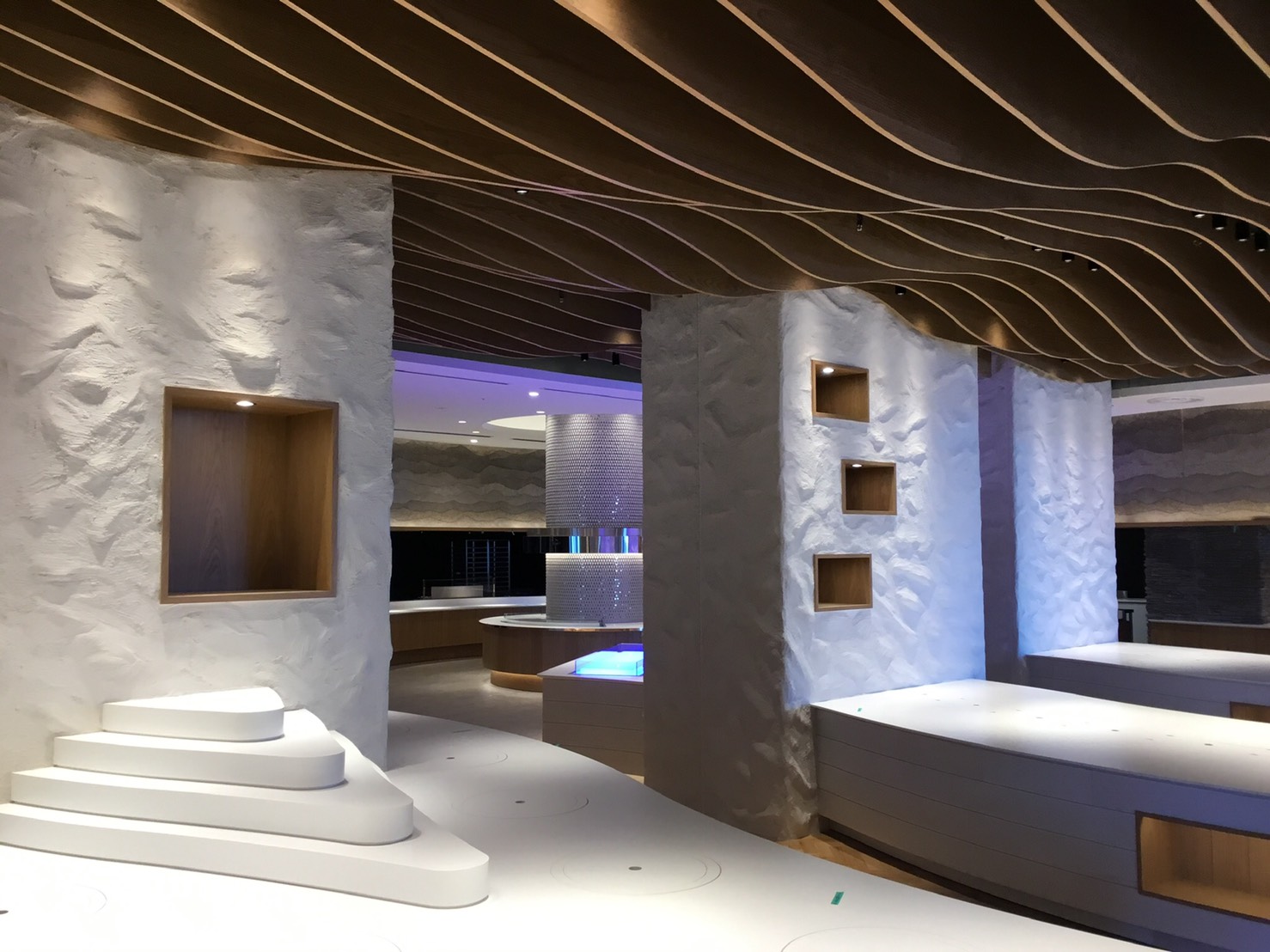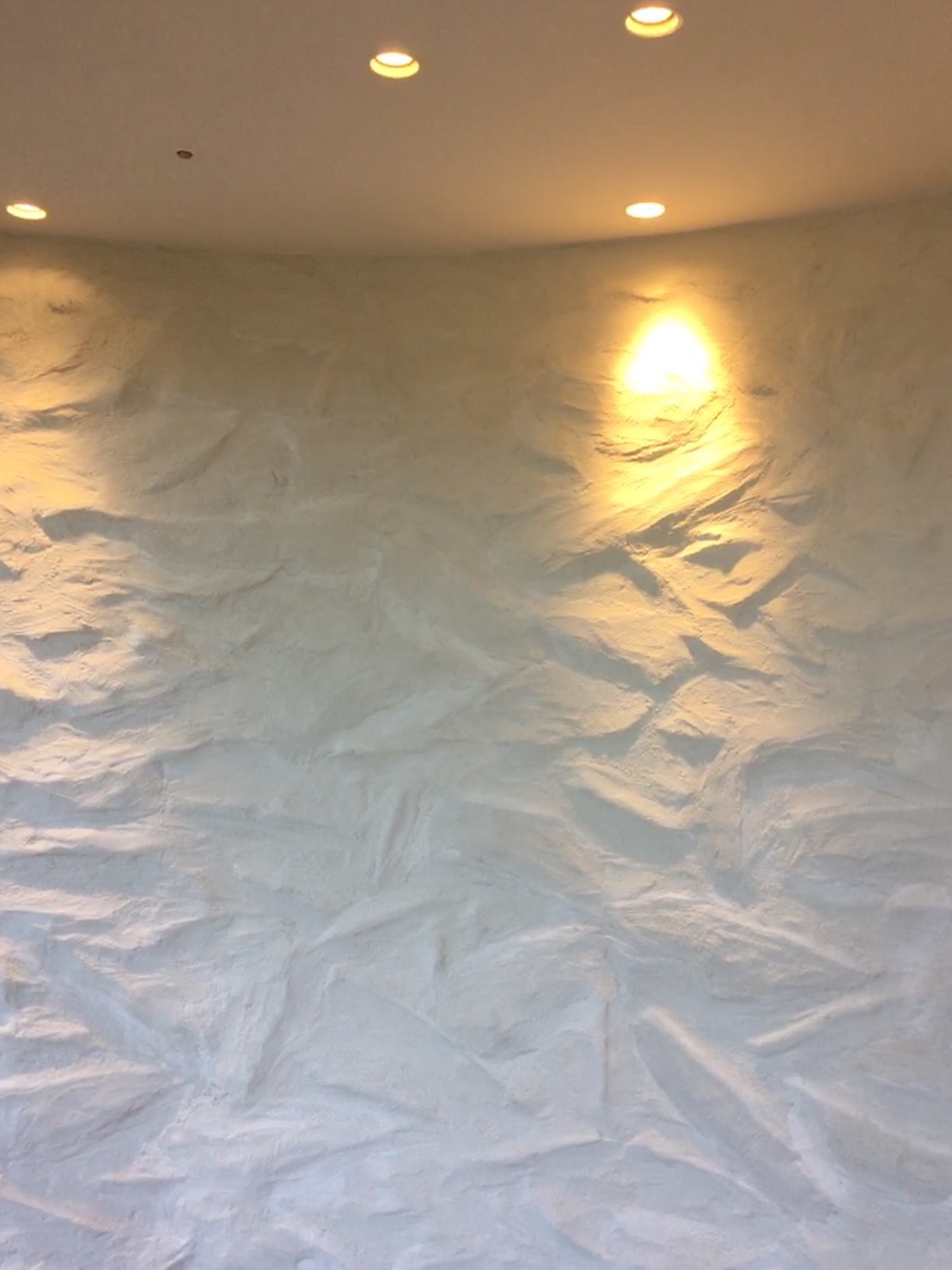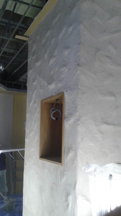 先日、ご依頼を受け某リゾート温泉施設のライブキッチン周りの凹凸壁の施工を担当しました。
