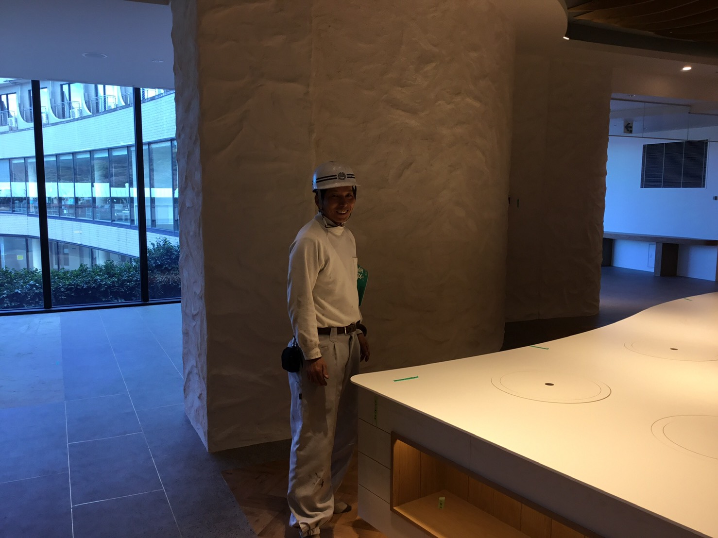 左官工事は伝統技術でありながら、今回のようにデザイン性の高い施工も可能ですので奥深く、楽しみがいのあるお仕事です。