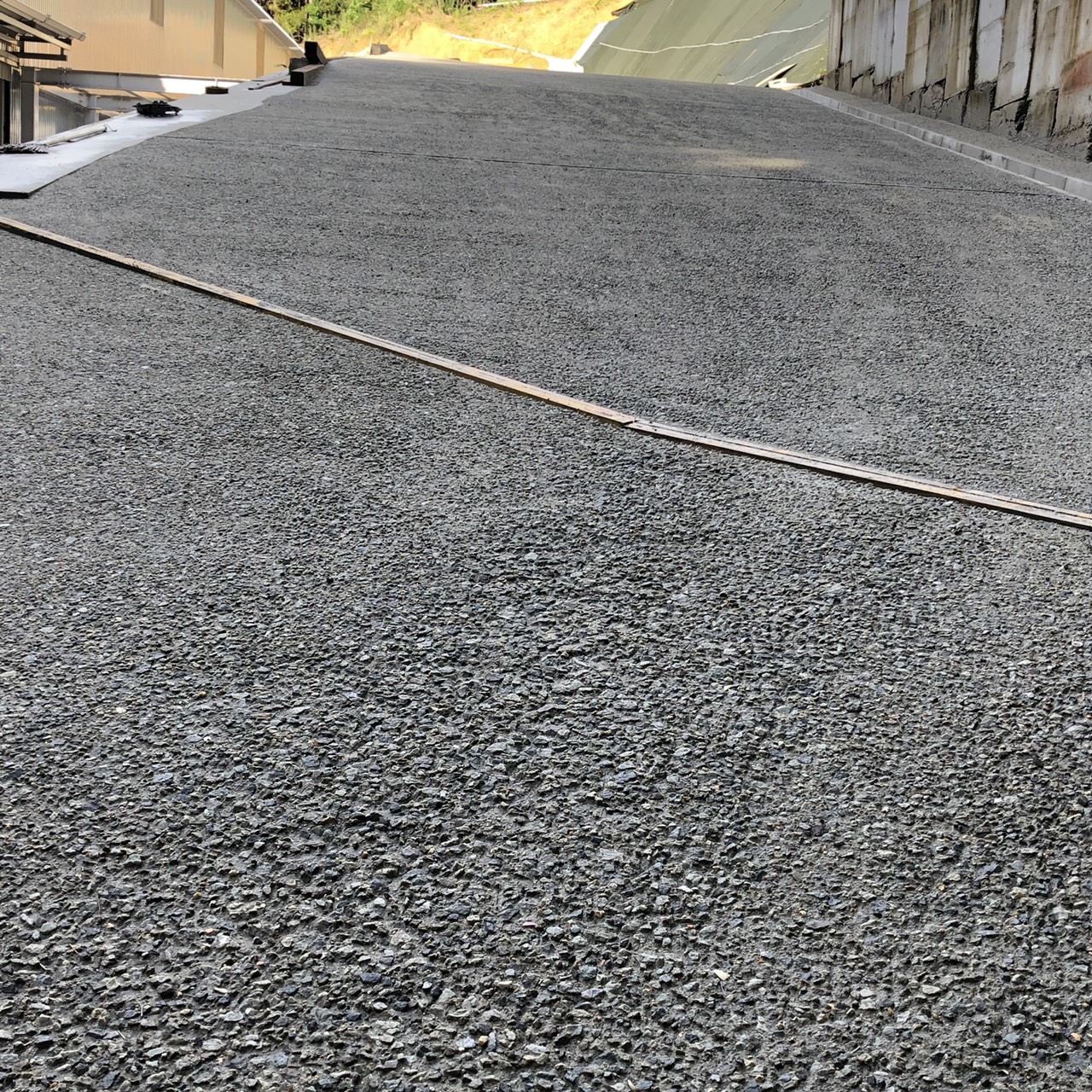 今回は先日、坂道のコンクリート舗装洗い出し仕上げを行いましたのでその様子をご紹介いたします。