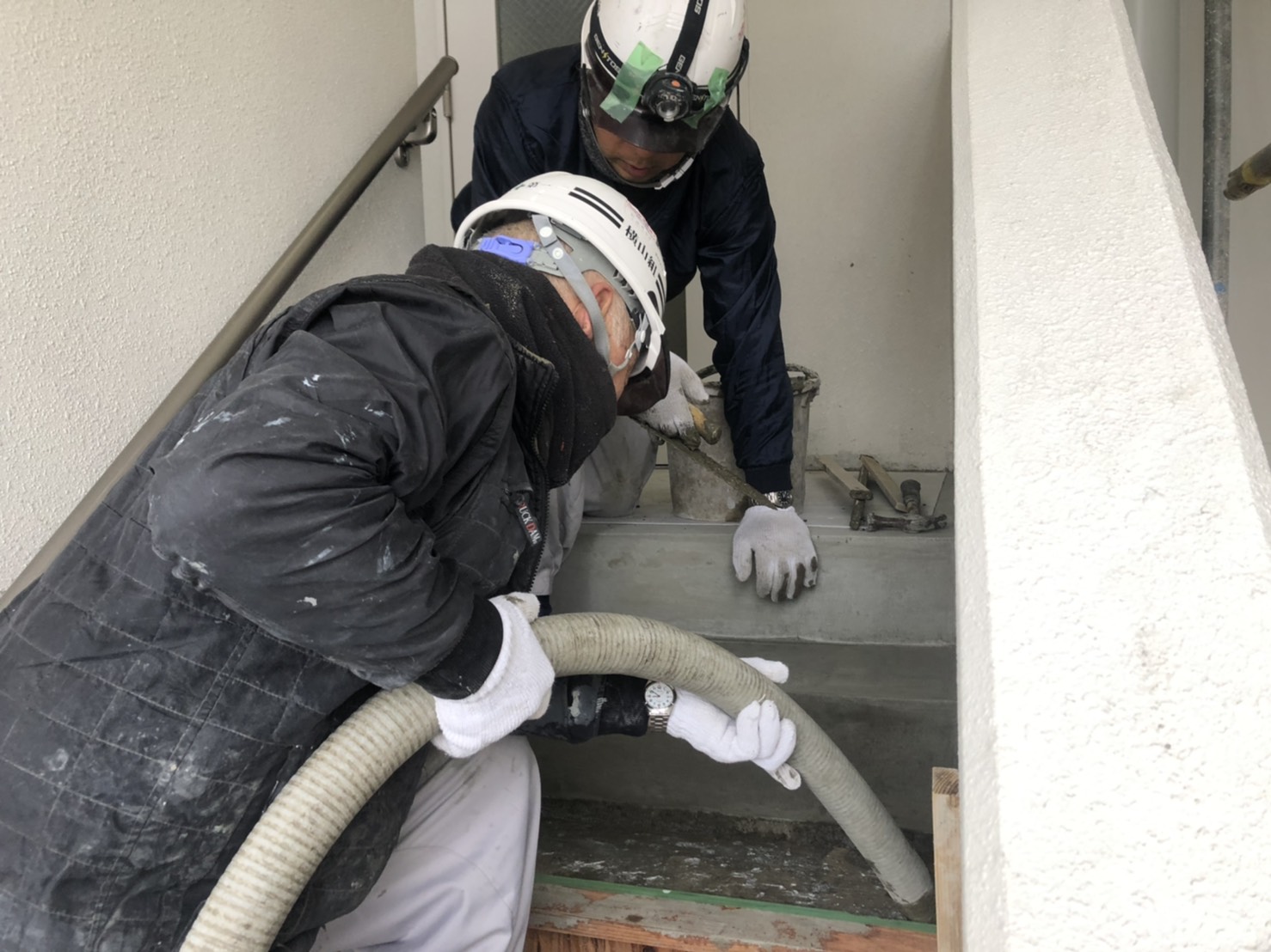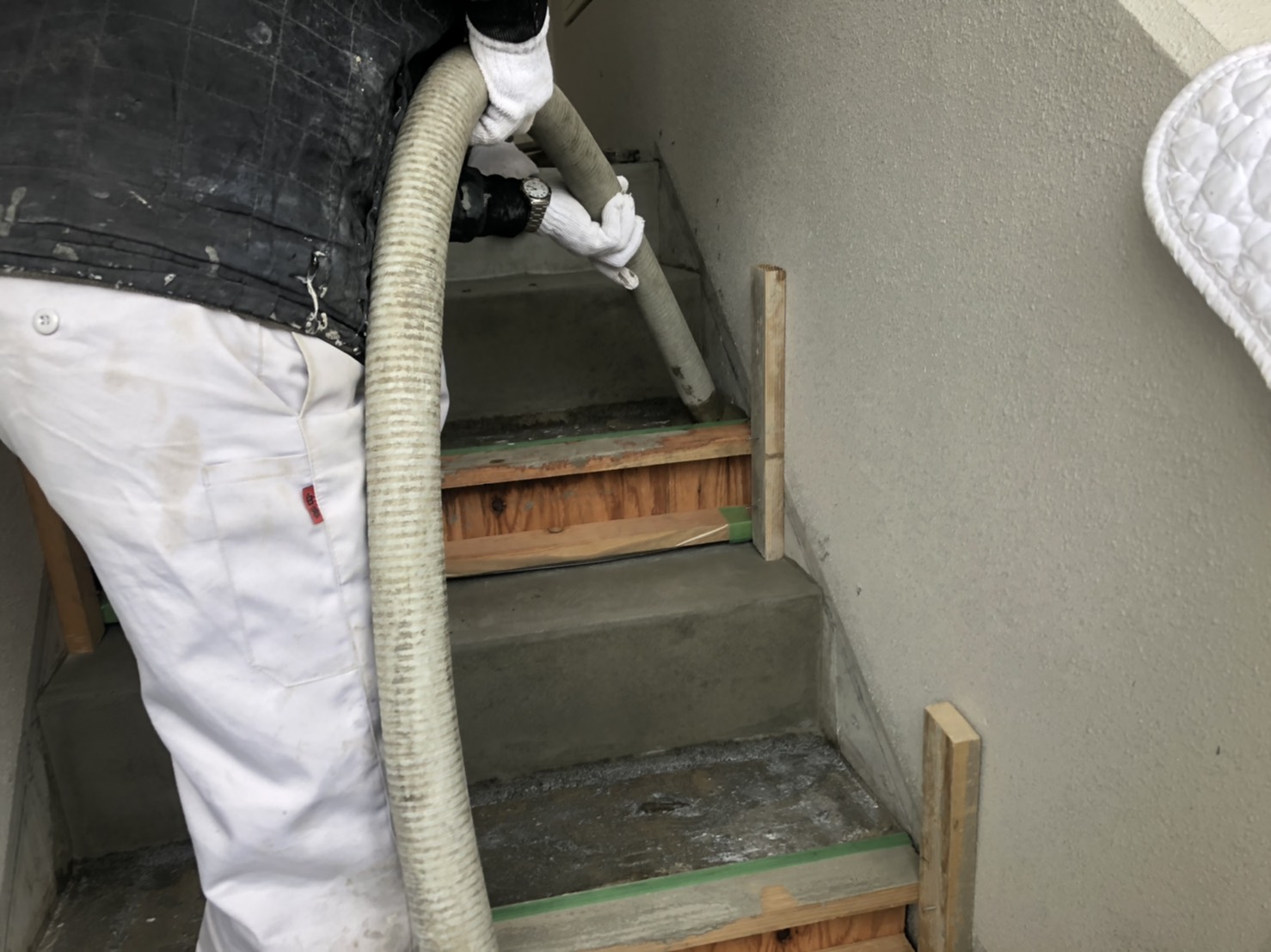 今回は、マンション階段のモルタル塗りの様子をご紹介致します。