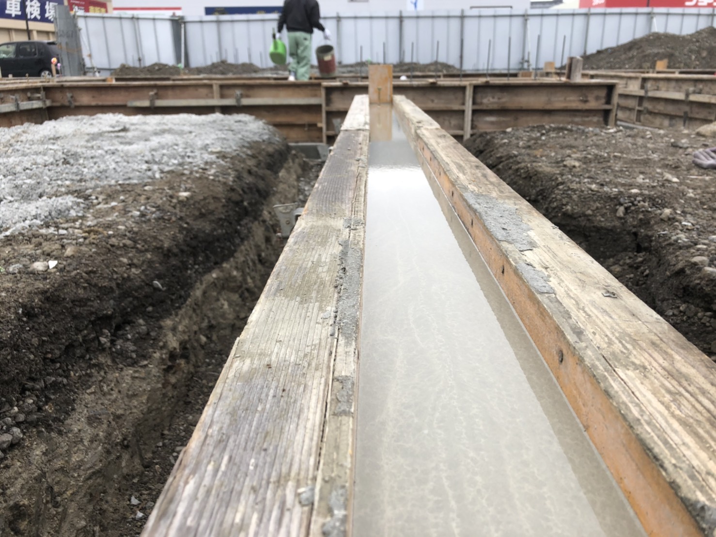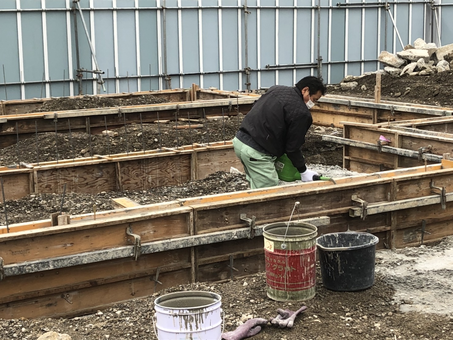 さて、今回は基礎天端レベラー施工の様子をご紹介致します。