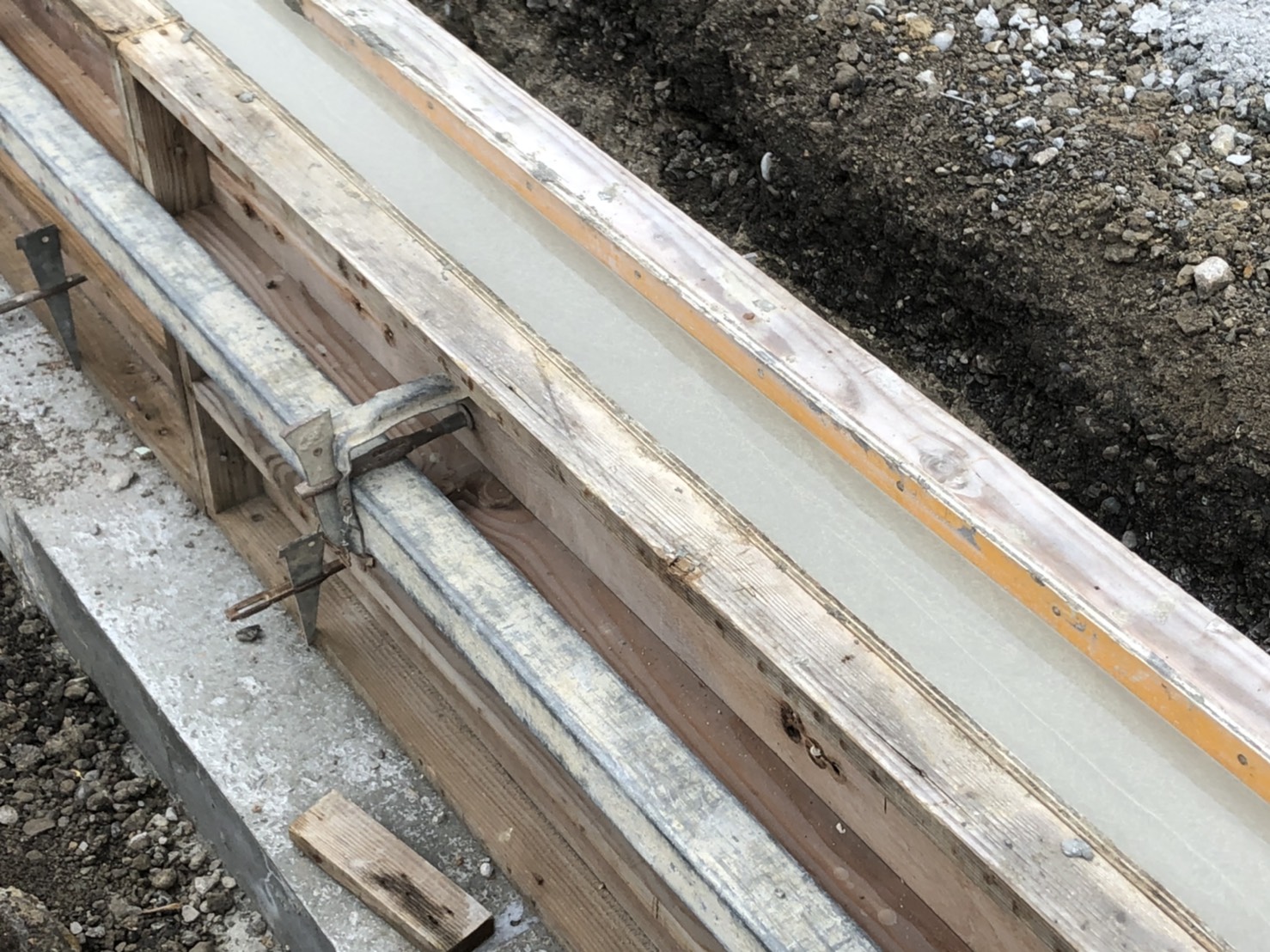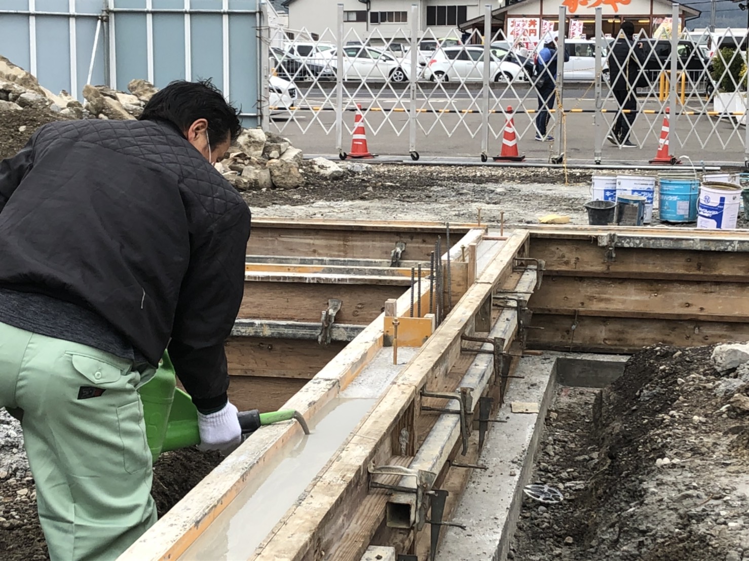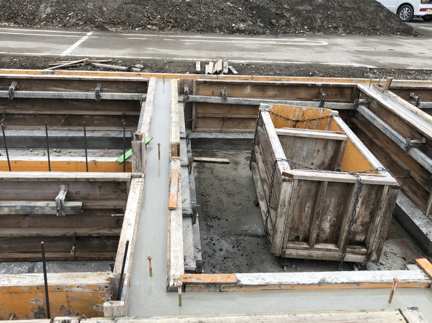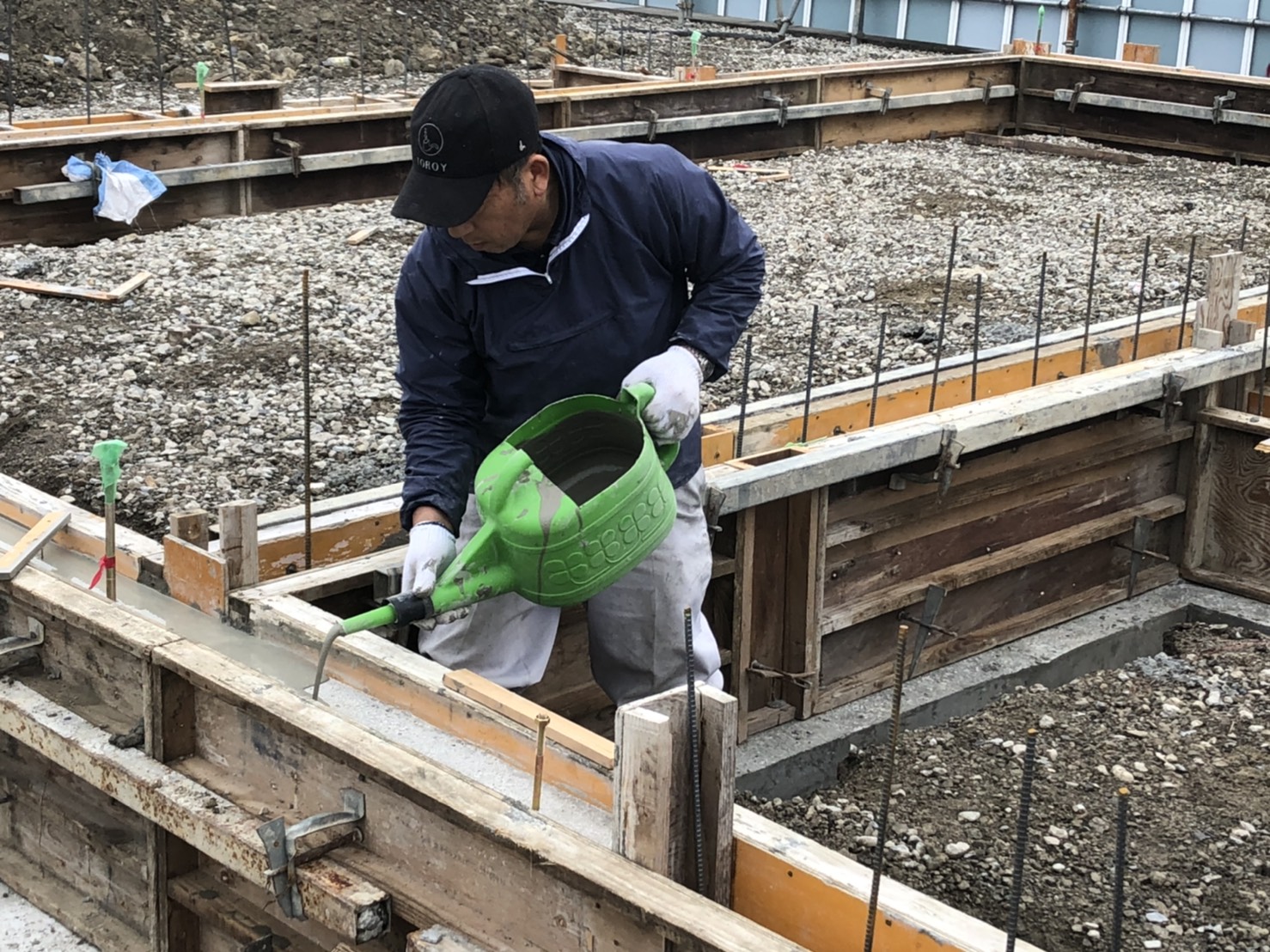 墨出しから高さを決めるアタリ出しや、型枠の隙間材料が漏れ出ないようにすための隙間詰めなど精度を出すための作業に神経をつかいます。