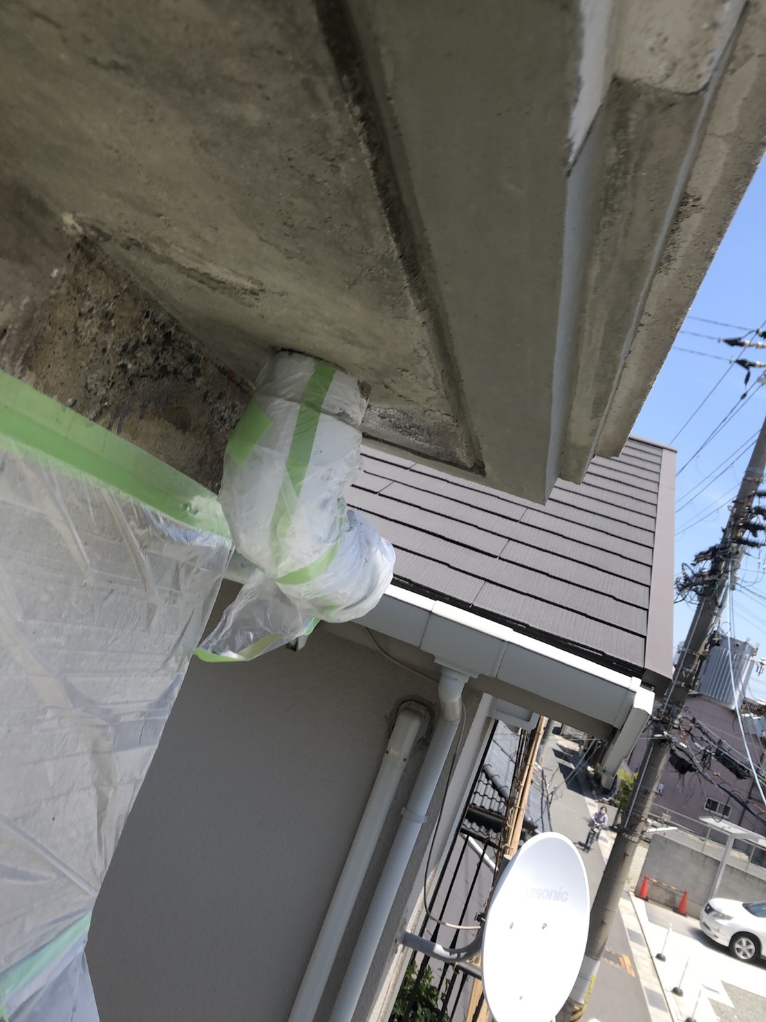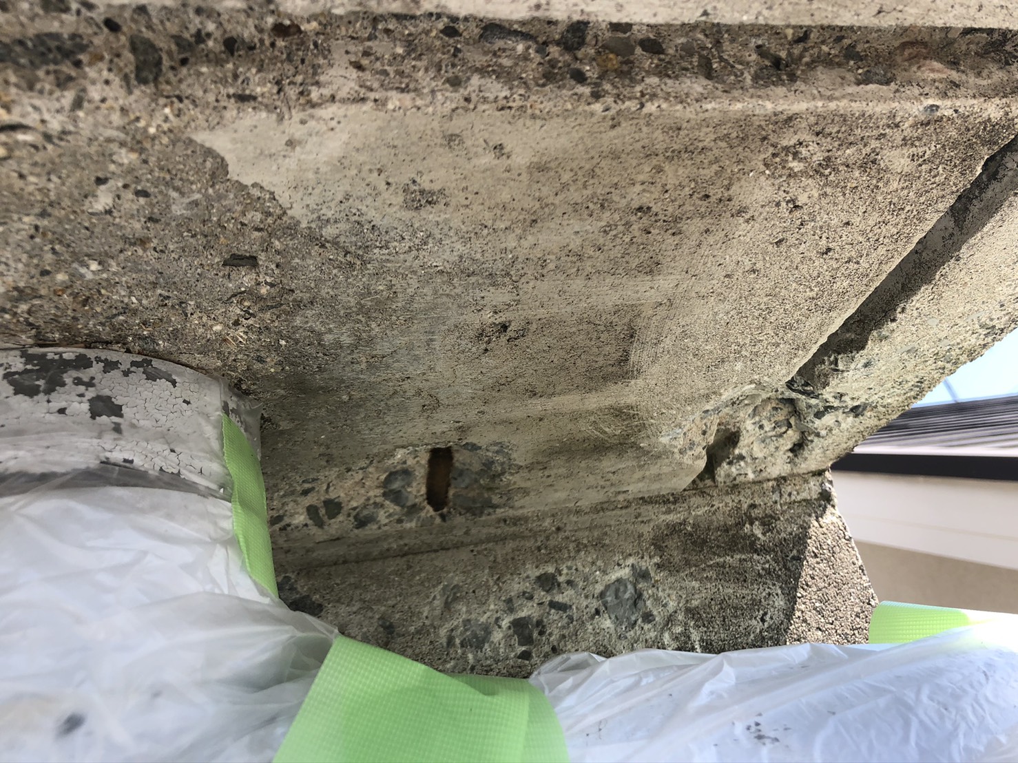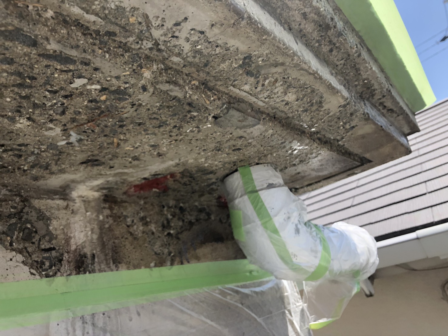 今回は、先日行ったコンクリート打放しの住宅の軒下の断面補修のようすをご紹介いたします。