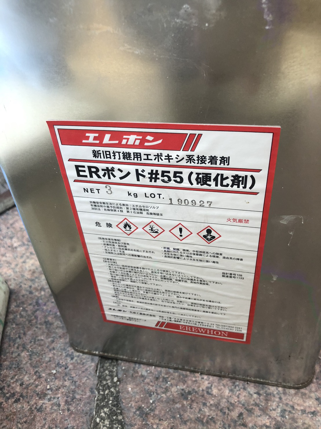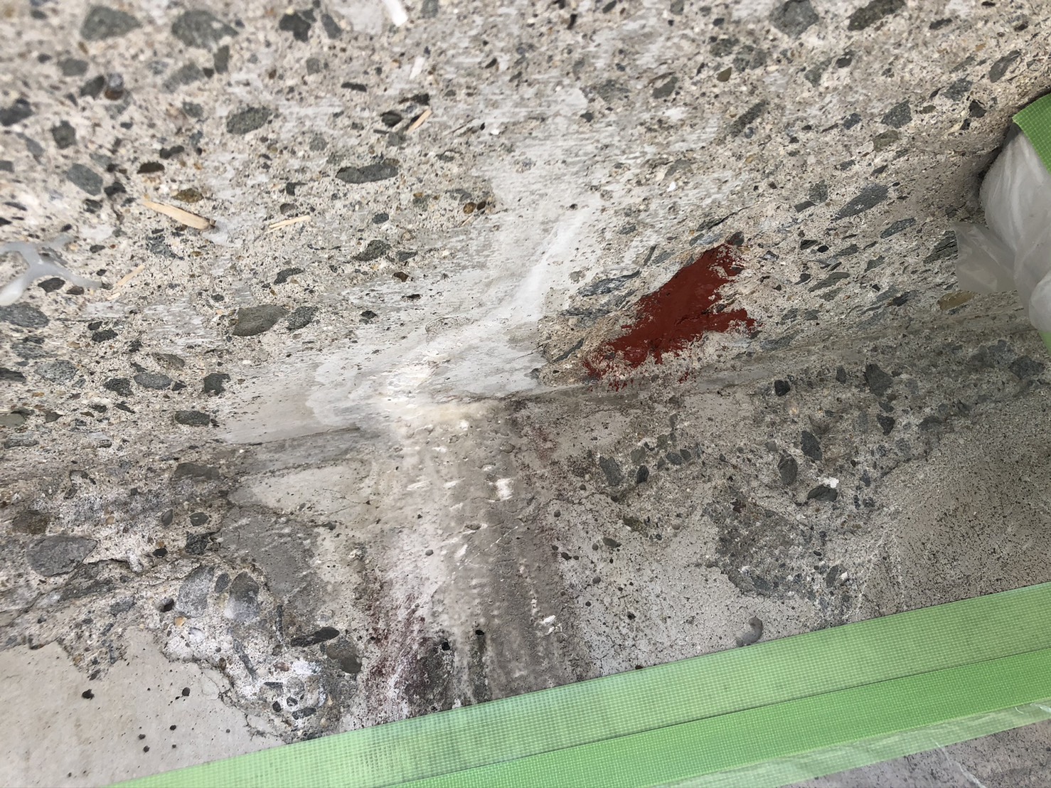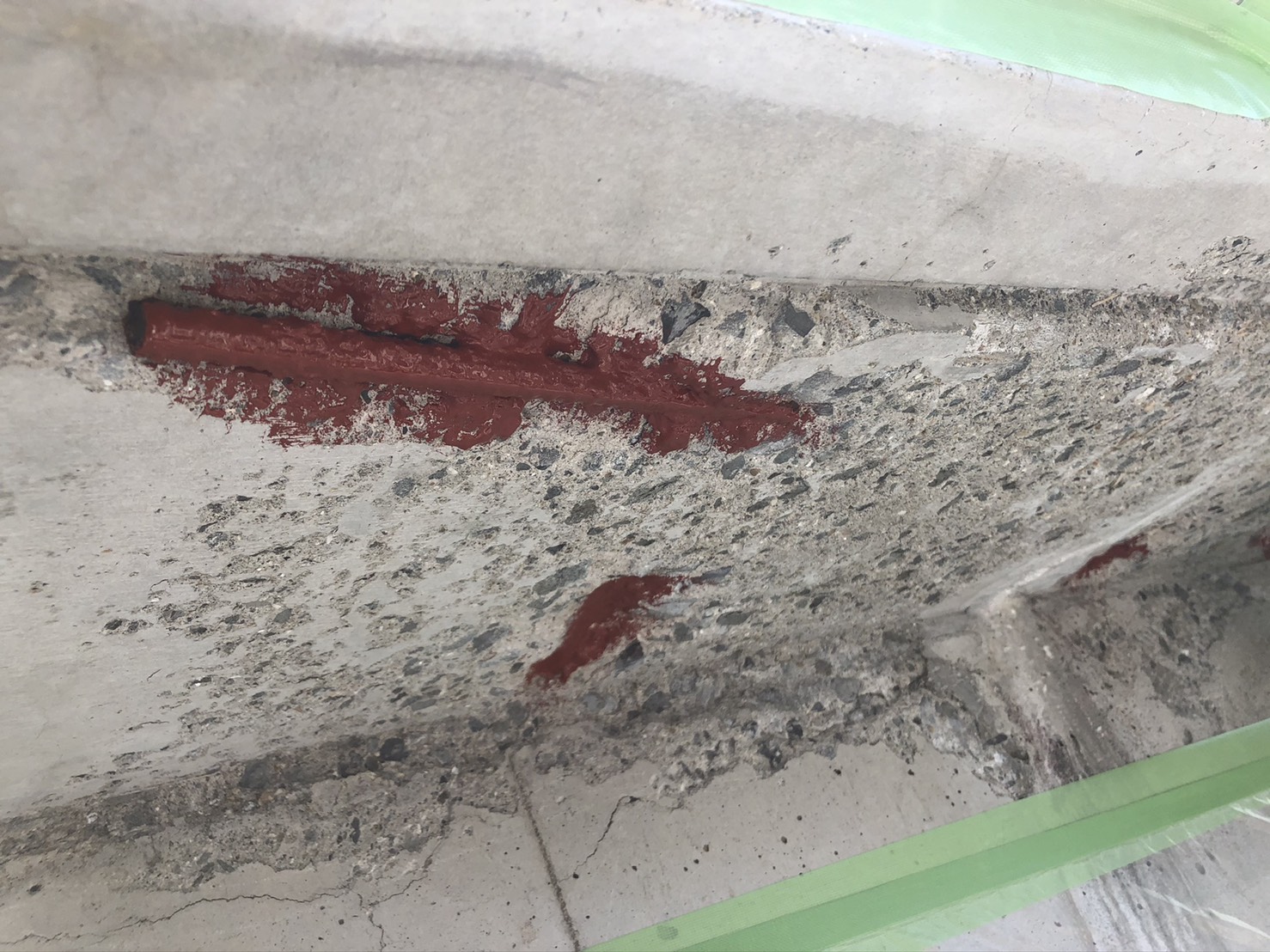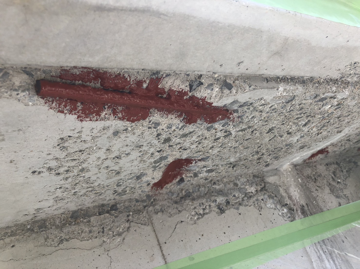 まずは、破断した部分をハツリ取り、ワイヤーブラシで鉄筋の錆を擦り、エポキシ系の錆止めを塗布します。