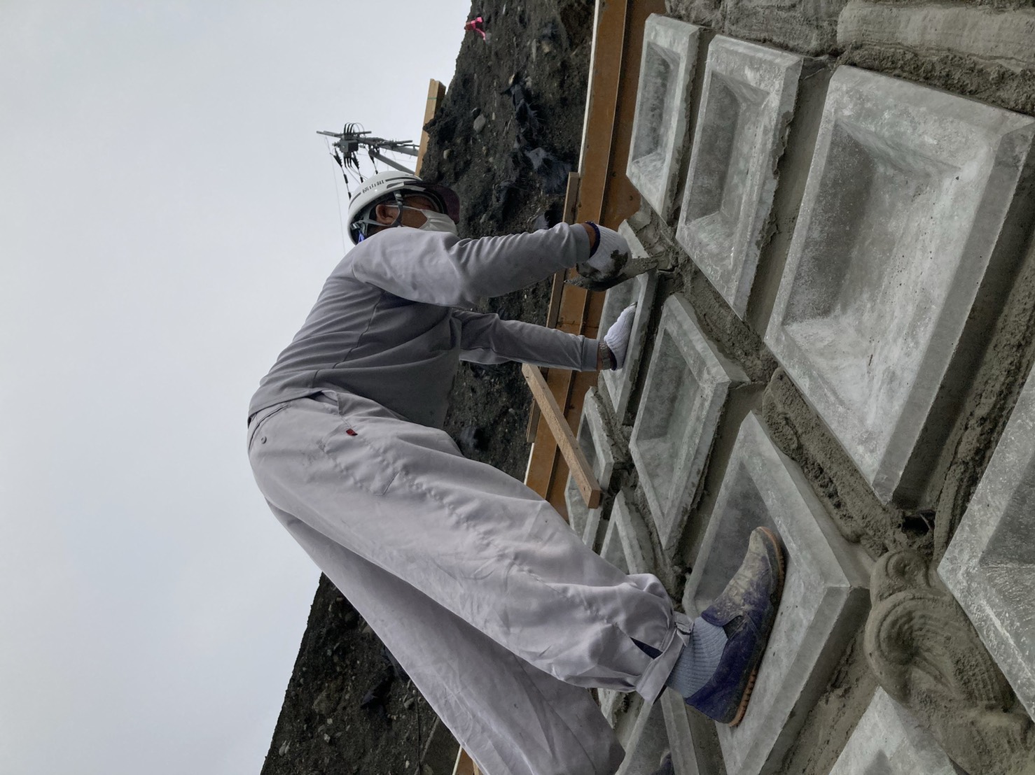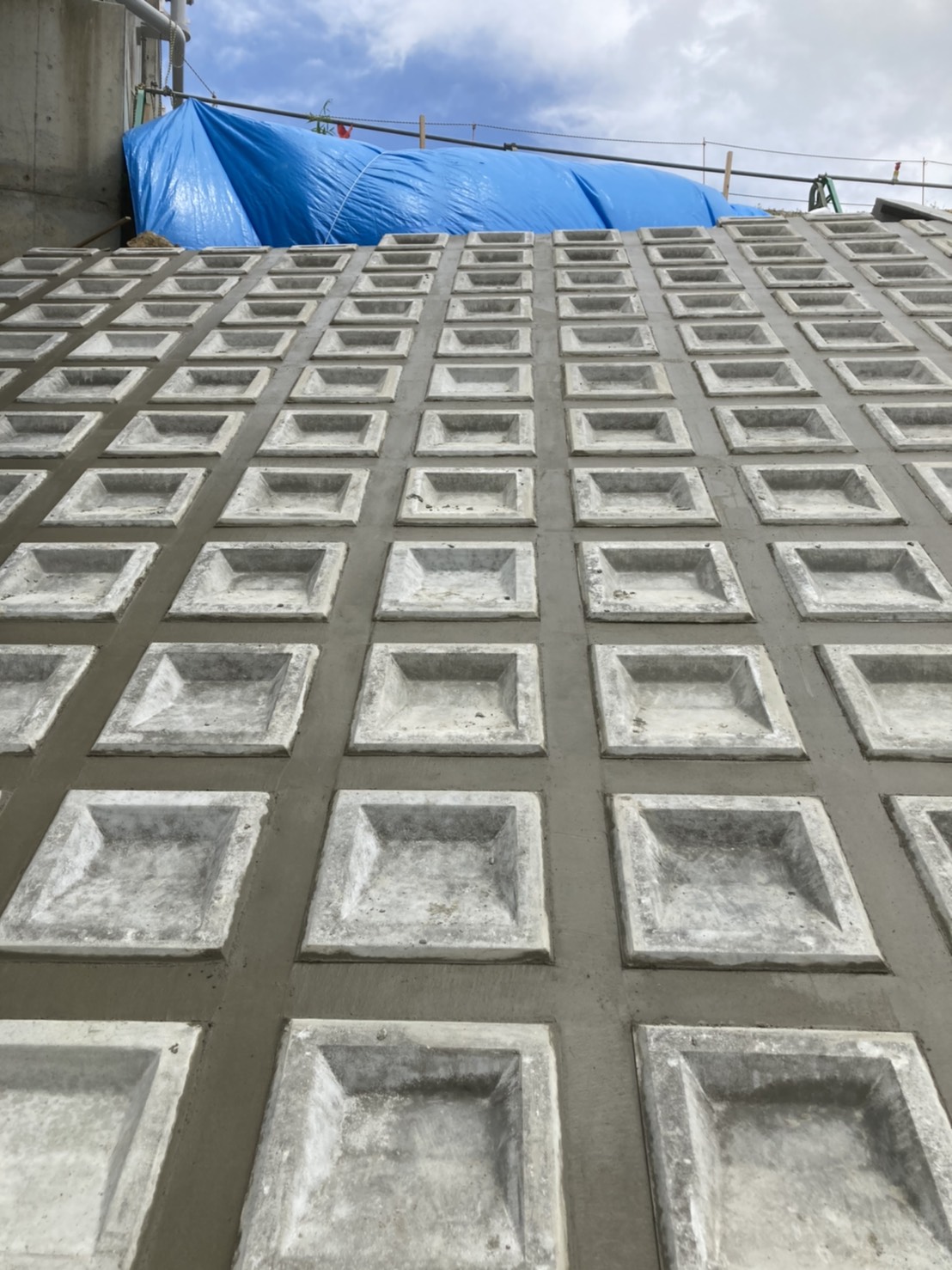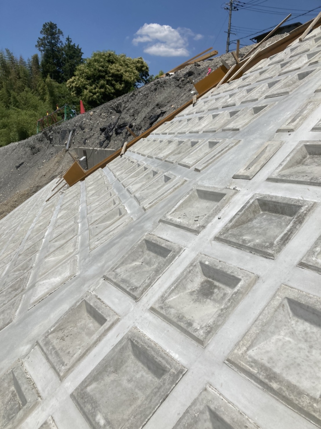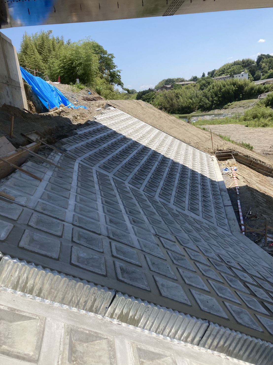 【モルタル塗り】河川敷きの斜面のブロックの間のモルタル塗り