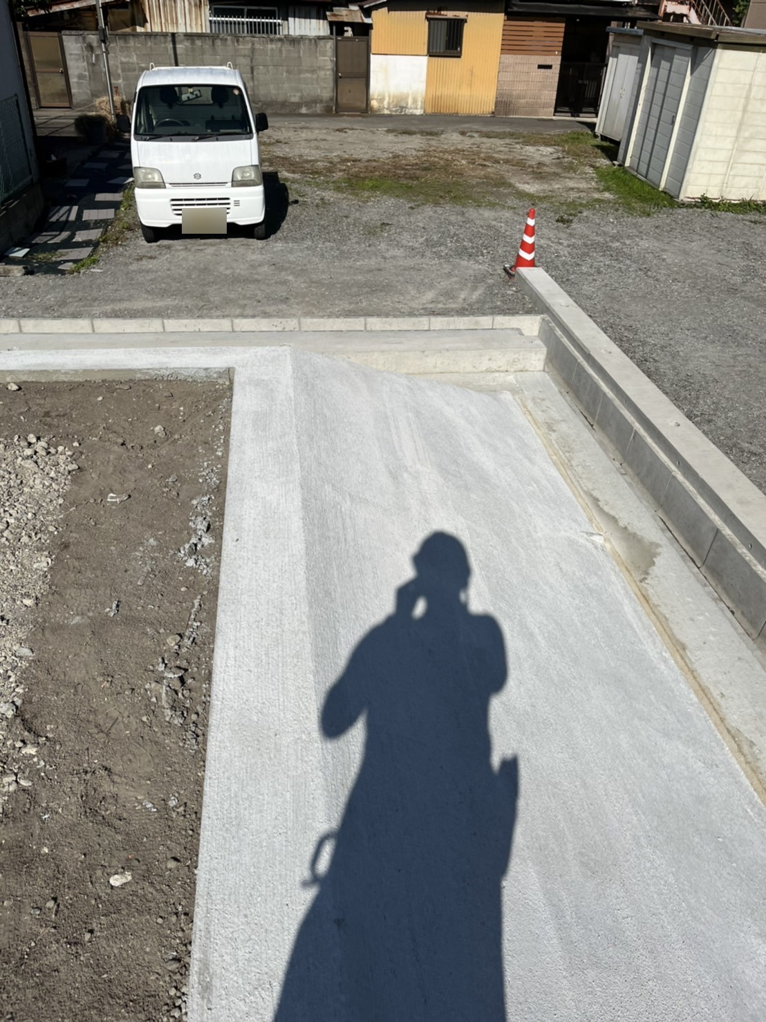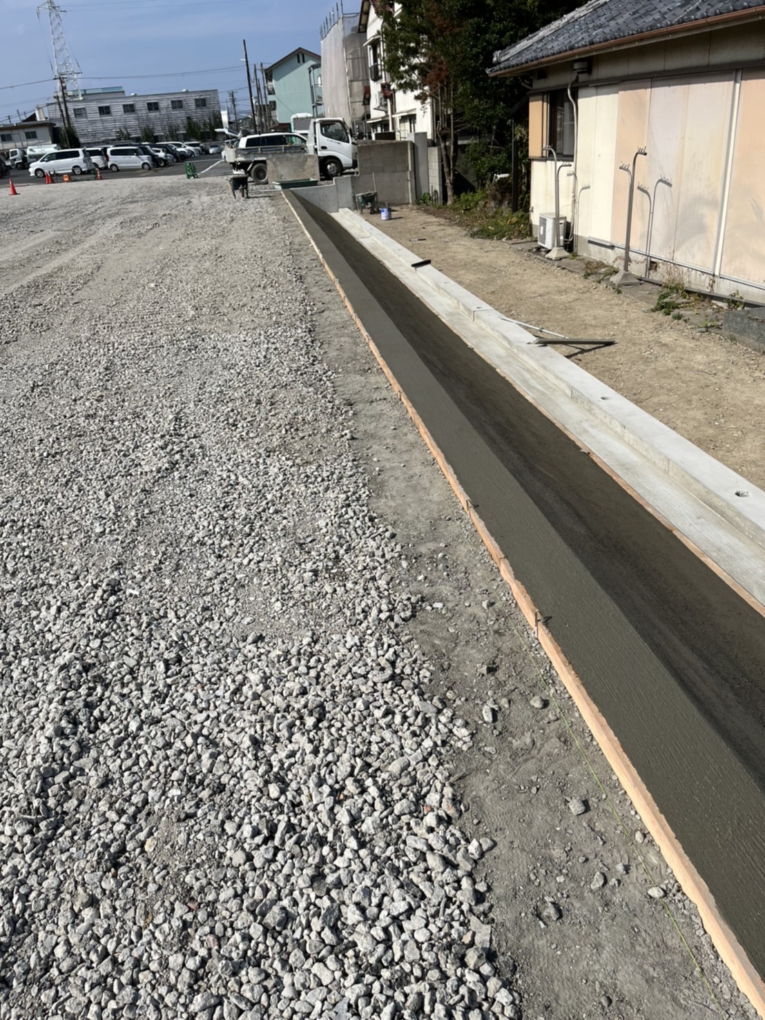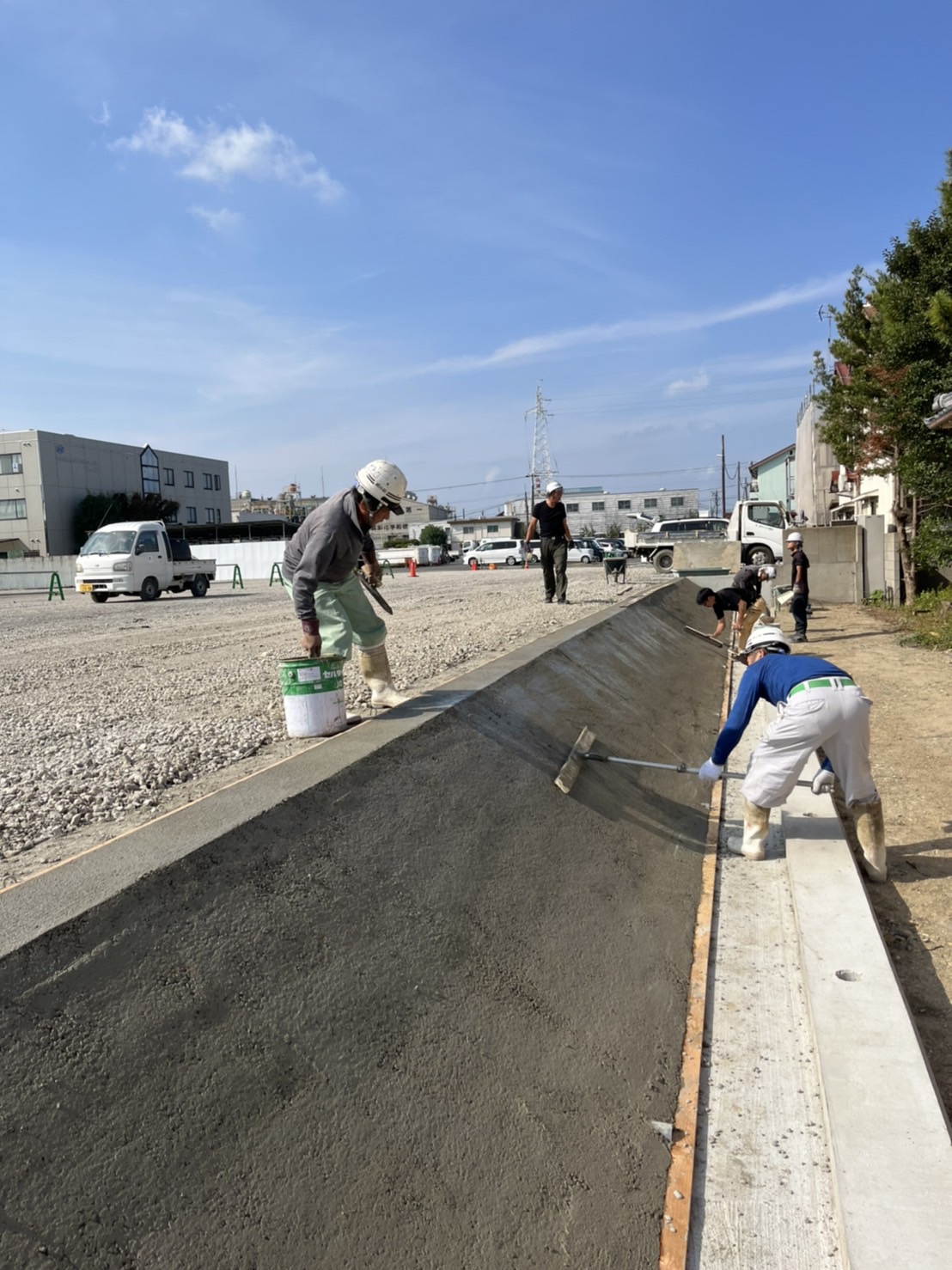今回は、駐車場造成地における法面(斜面)コンクリートの刷毛引き仕上げを行ないました。