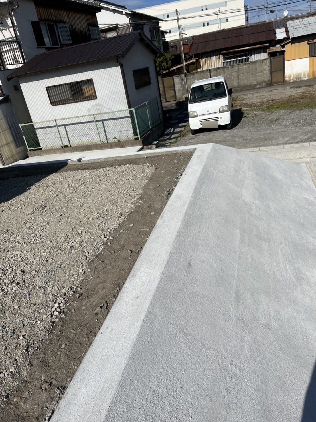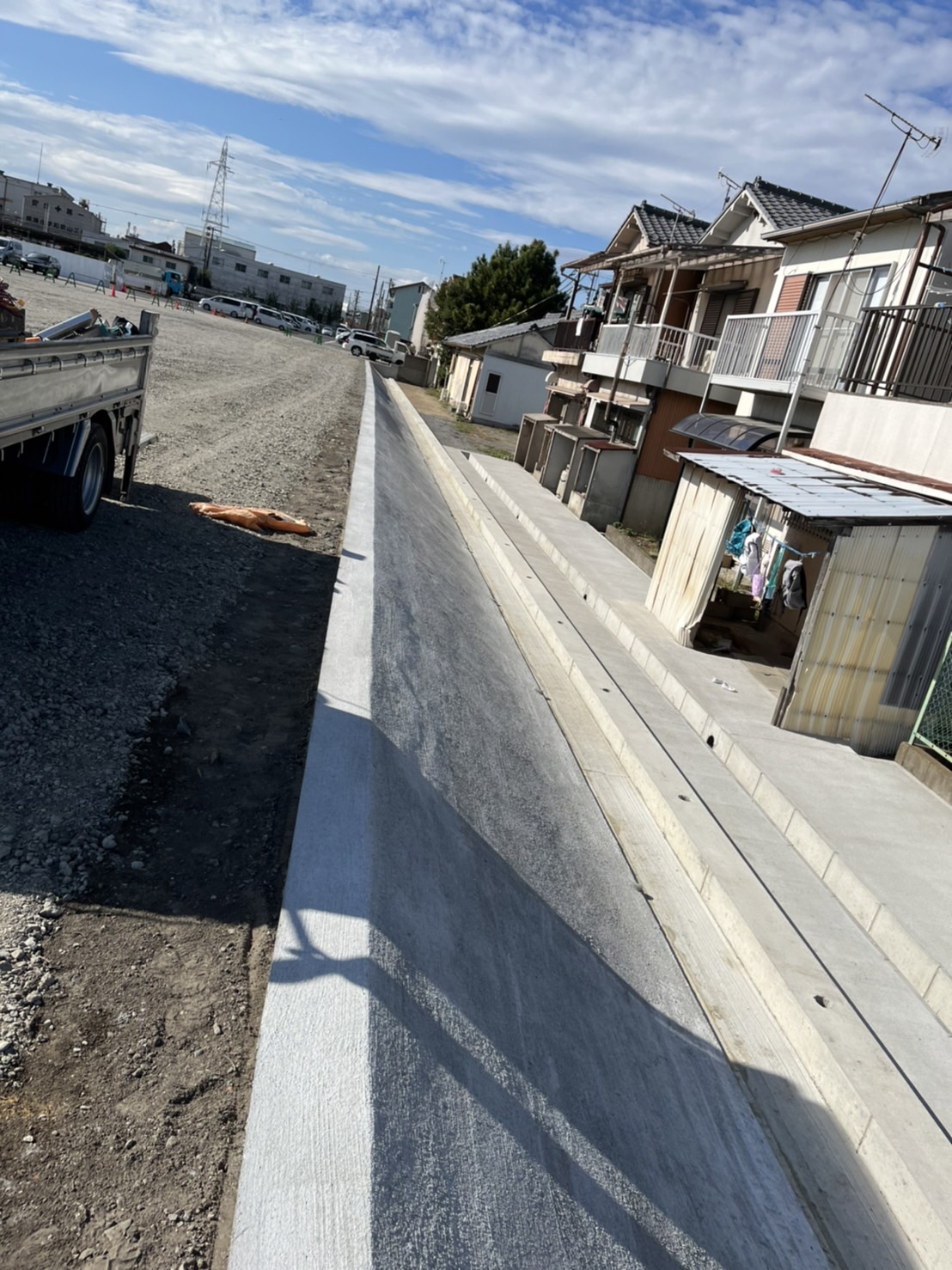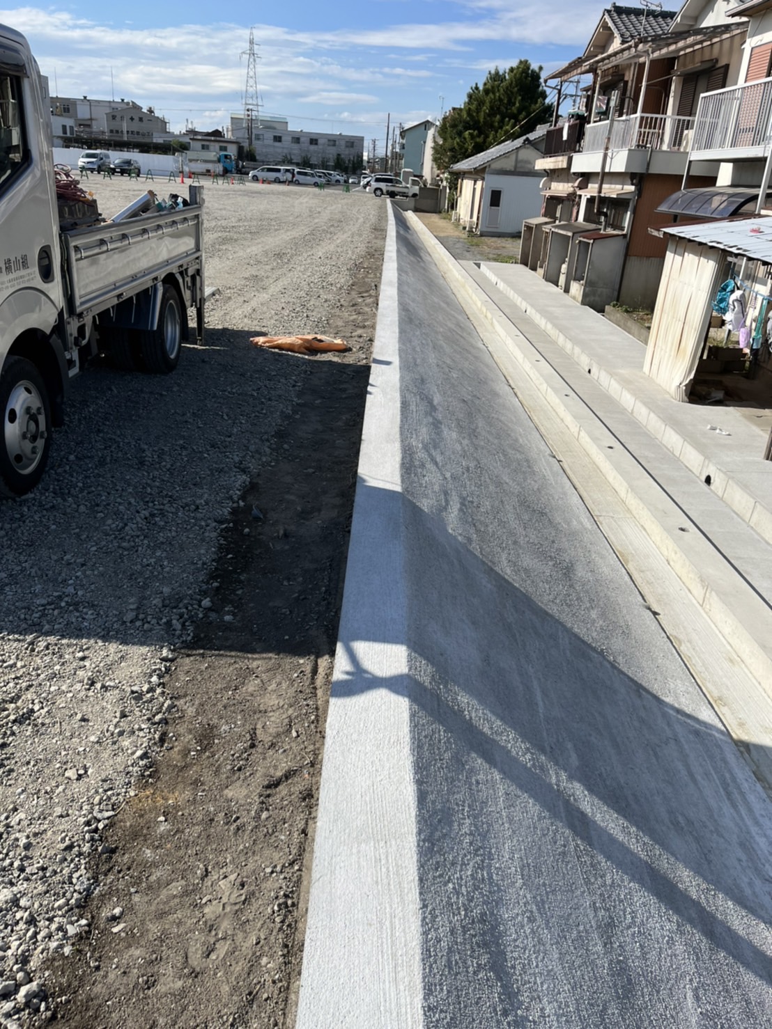 今回は、駐車場造成地における法面(斜面)コンクリートの刷毛引き仕上げを行ないました。