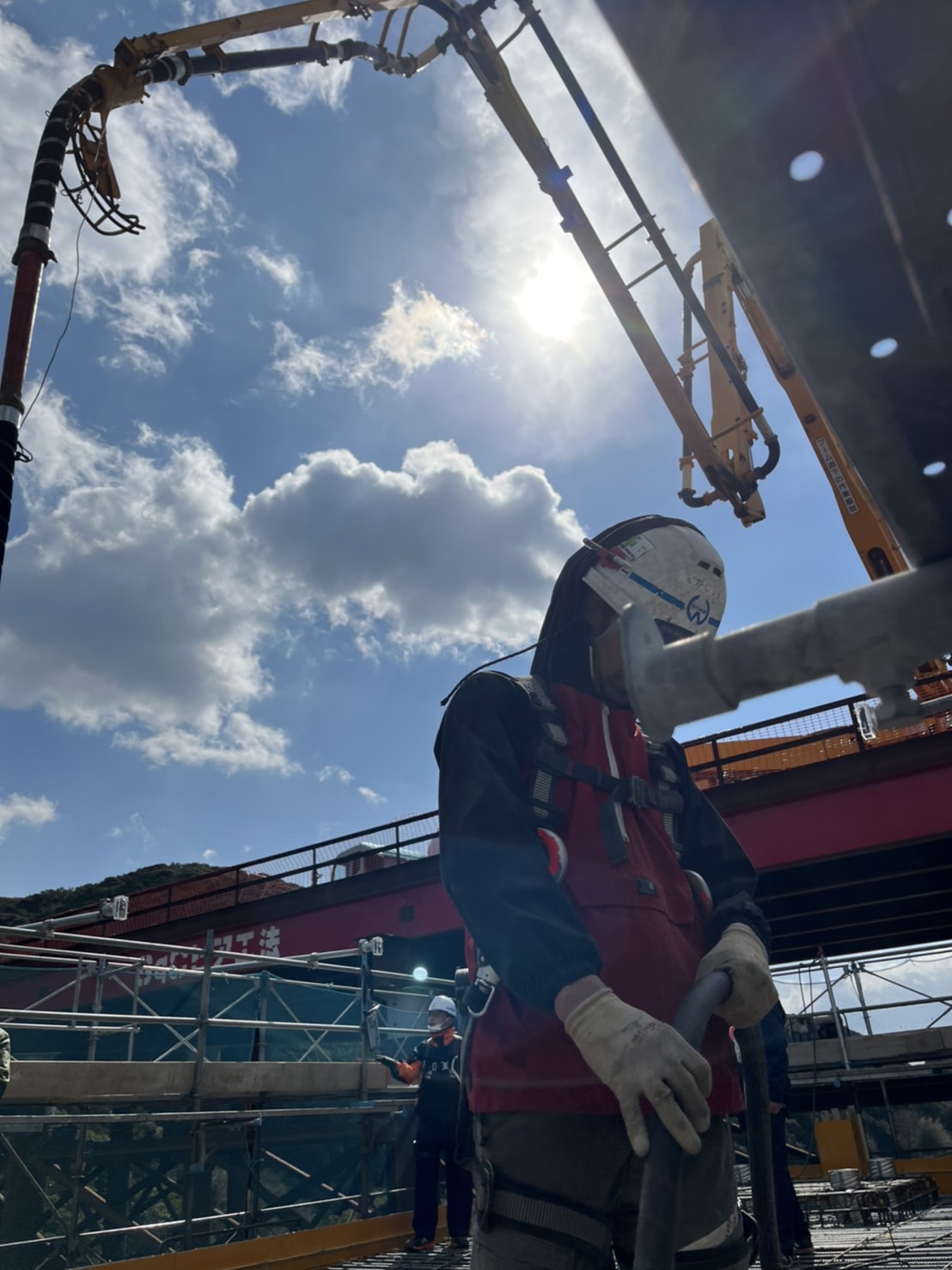 私たちは、打設が始まって、コンクリートが天端まで上がってくるまで出番がありません。