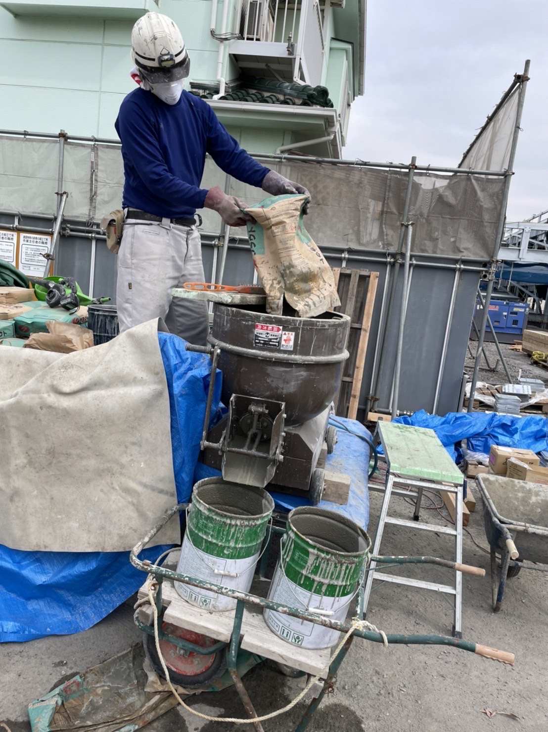 わりと材料が多かったので、高速ミキサーでグラウトを練りました。