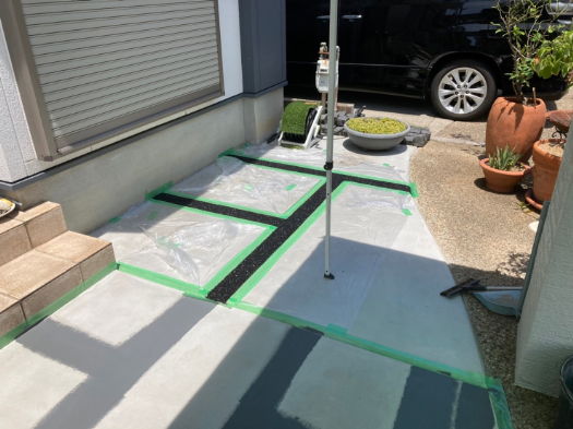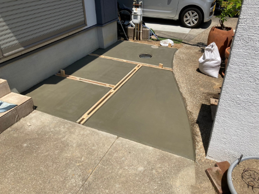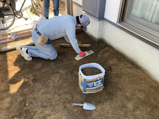 芝生の手入れに疲れて、草が生えないようにしたいので、セメントを流したいと依頼をうけました。