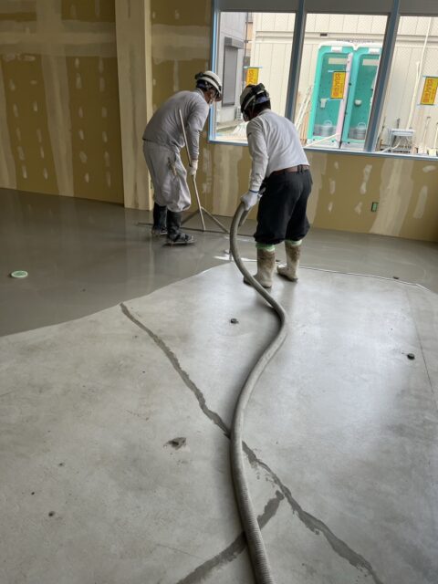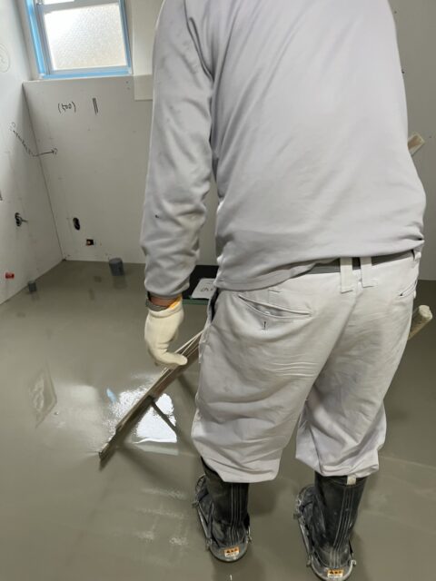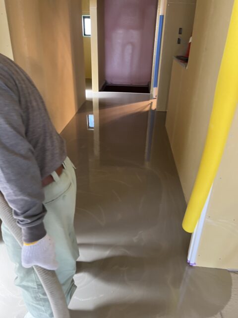 流すだけで水平になっていくので、とても作業時間が短縮できる施工法です。