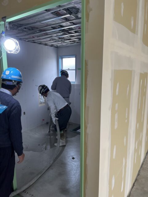 施工後は、乾燥を待って、長尺シートやフローリングなどを内装業者さんが仕上げて終了です。