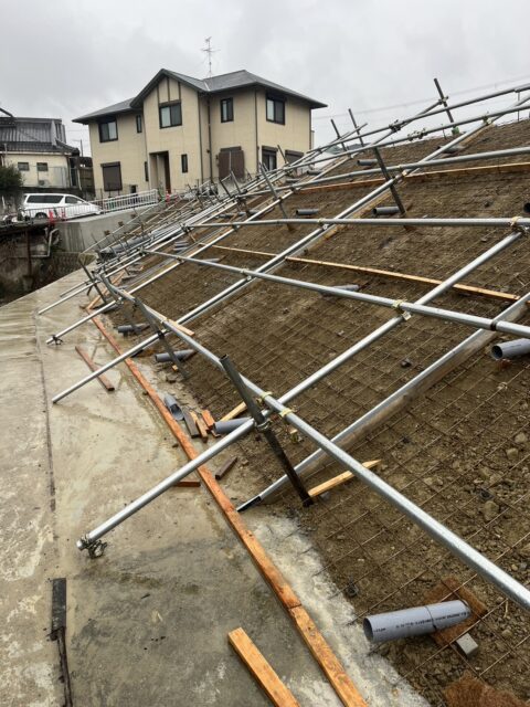今回は広めの法面(斜面)のコンクリート打設風景です。