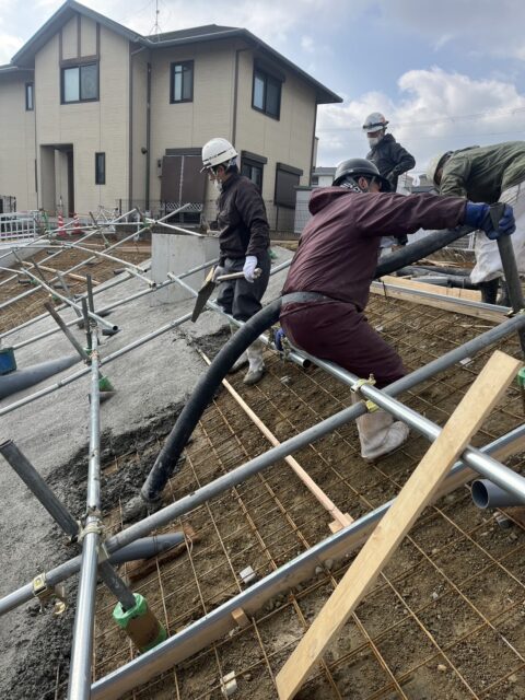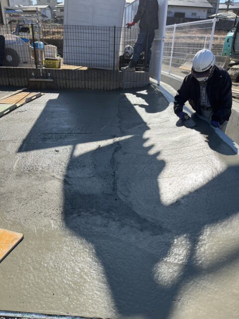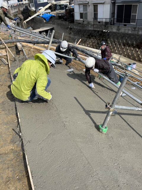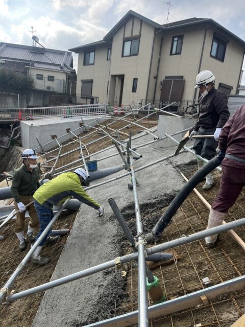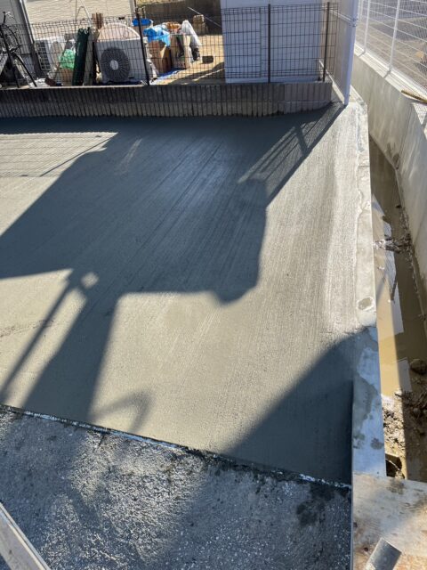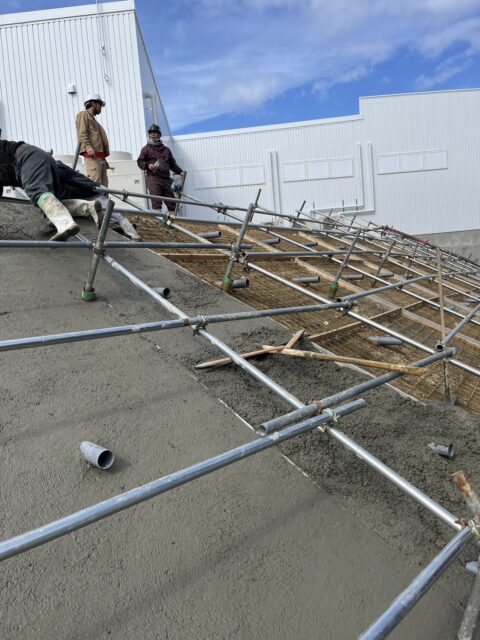 あとは上からコンクリートを流し込んでいくのですか、コンクリートが柔らかいとダメで硬すぎるぐらいがちょうど良いのですが、均すのはとてもしんどいです。