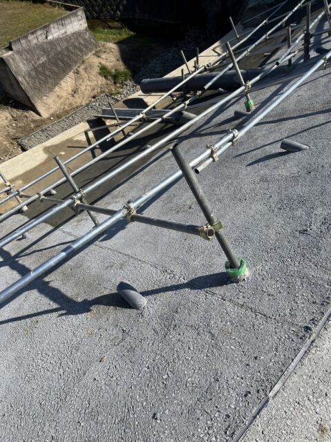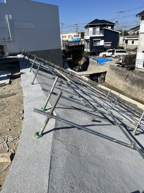 斜めでずれ落ちないように鉄筋を打ち込んで止めていきます。