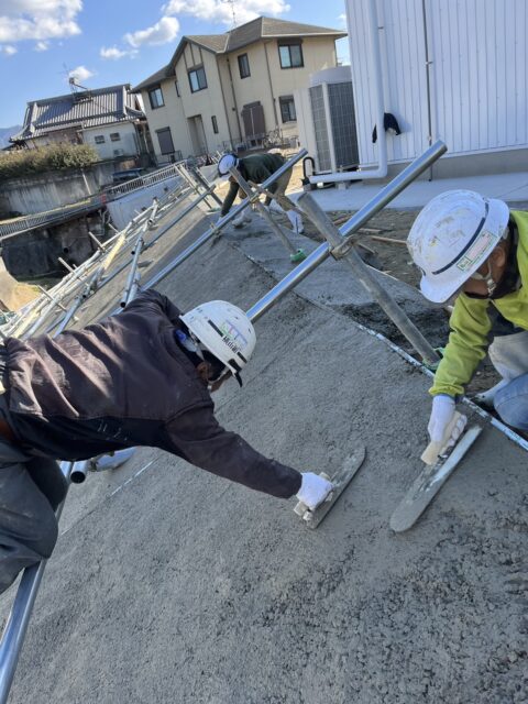 最終の均しを整えていく時に足をつけると足形を消すのが大変なのです。