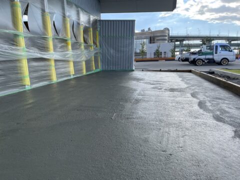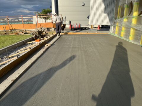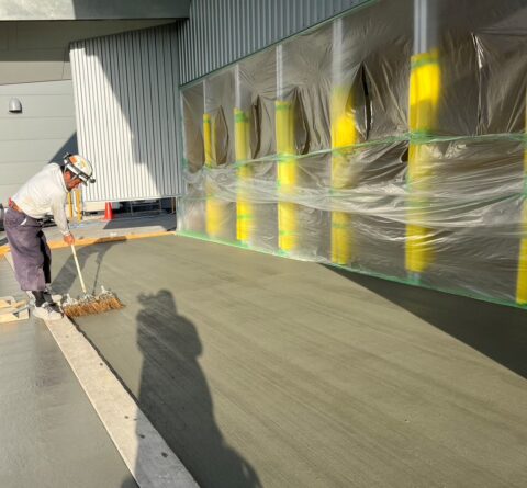 今回は、某トレーニング施設の外構工事で、アプローチのコンクリートほうき目仕上げを施工しました。