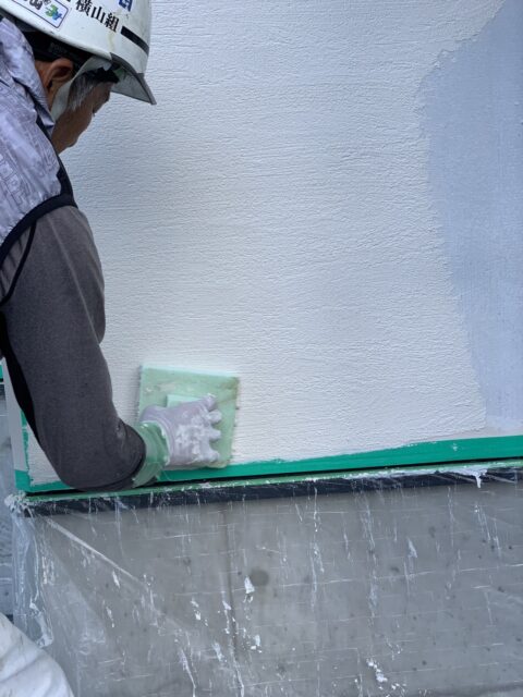 結構ばたばしますが、連日の猛暑の中、仕上げ面は入隅や出隅でテープで止めて休憩入れながら作業しました。
