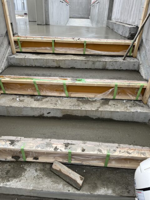 某中学校 プールの新築工事現場 階段づくりの風景