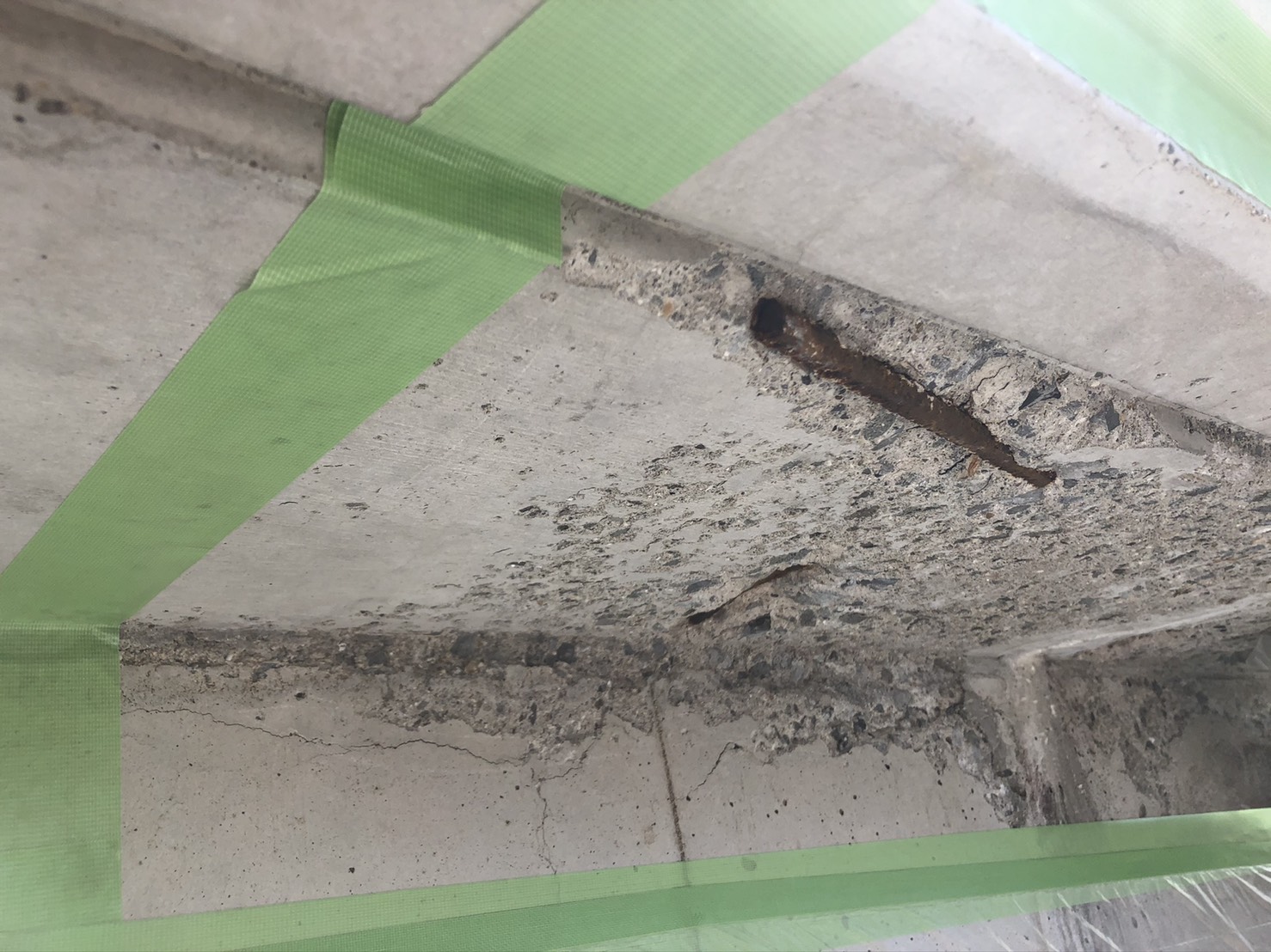コンクリート打放しの住宅の軒下の断面補修